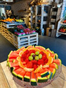 Onze fruitsalades zijn een feestje voor de zintuigen. Gemaakt van vers gesneden fruit, zijn ze ideaal als gezond tussendoortje, ontbijt of dessert. Het gevarieerde aanbod zorgt ervoor dat er altijd iets naar uw smaak bij zit. Denk aan een combinatie van sappige ananas, frisse druiven, zoete meloen en seizoensgebonden bessen. Onze fruitsalades worden dagelijks bereid, zodat u verzekerd bent van een optimale versheid en smaak.